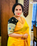 Like “Kasturi” the musk deer that goes mad searching for the scent of musk around it, not realizing that the essence comes from within ... be the cynosure of all eyes in our pure Benaresi katan silk with Paithani motifs in Meenakari handwoven exclusively for you!