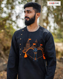 The Kurta is neatly finished with silver kara or border trimmed Chinese collar, full length sleeves & Kurta style relaxed fit, front button placket & side pockets.