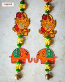 Presenting “Vakratunda Latkan - Pair ” an artistic attempt to string together relevant elements of the Ganesh Chaturthi festival in a latkan or side toran form.