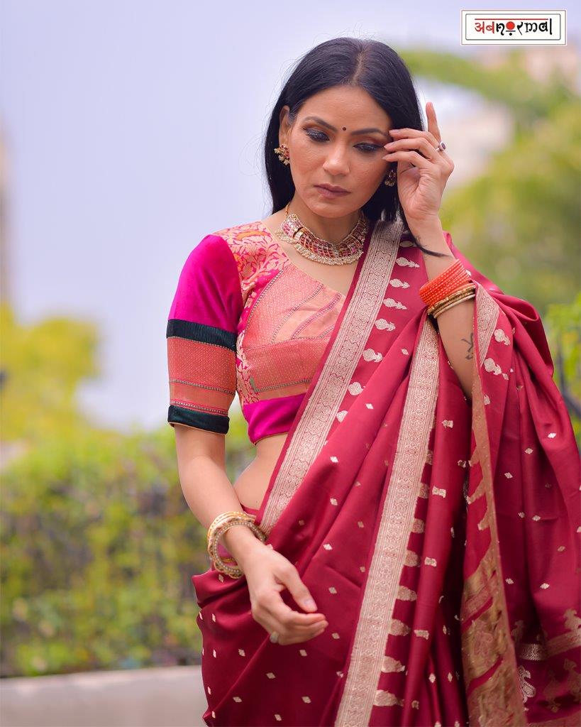 A Banarasi bootidaar kadhua is as timeless as the city itself. A technique which requires each motif to be individually woven, results in a handloom masterpiece that appears embroidered or ""kadha hua""! A labour of love, an extraordinary, enduring piece of art.