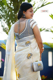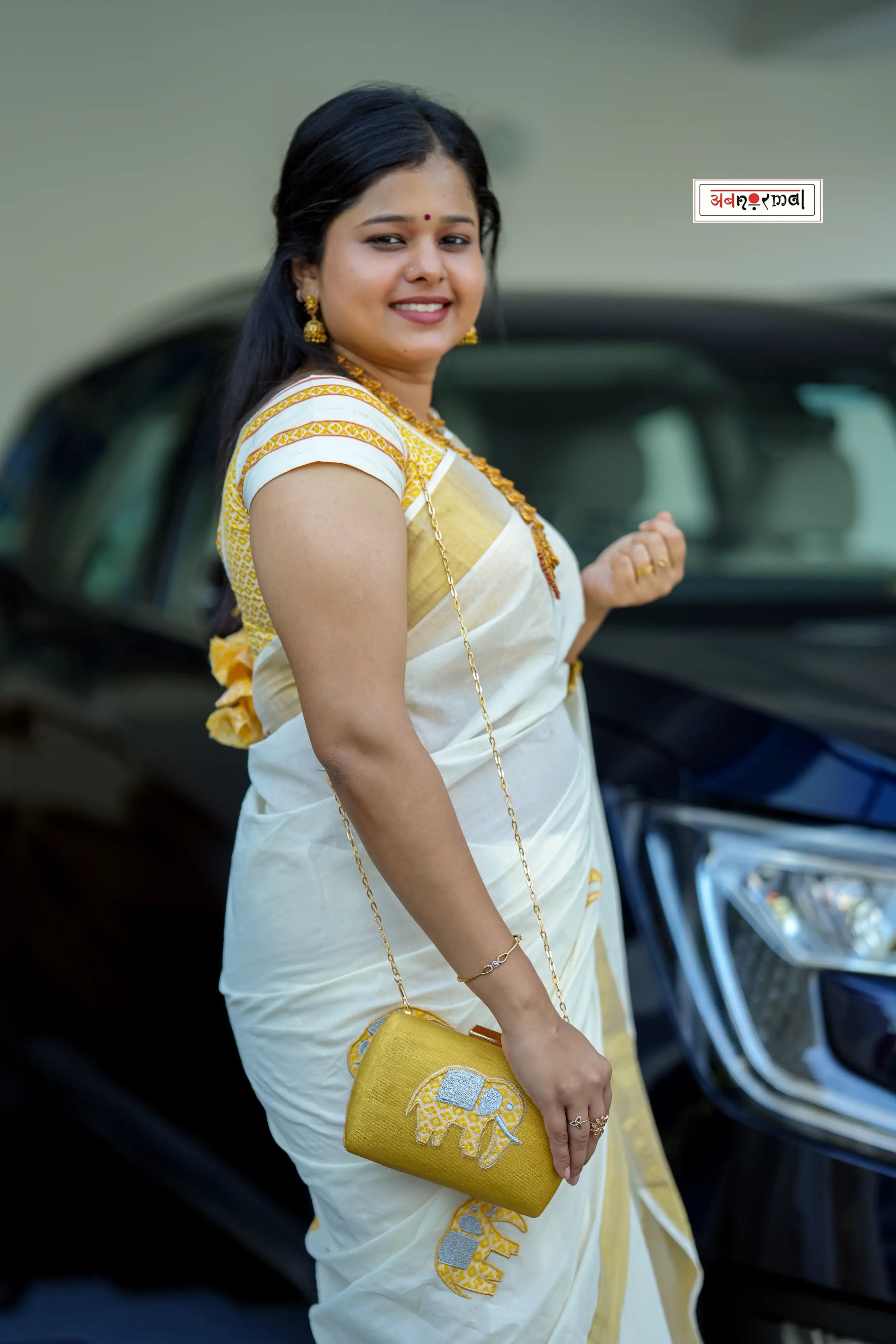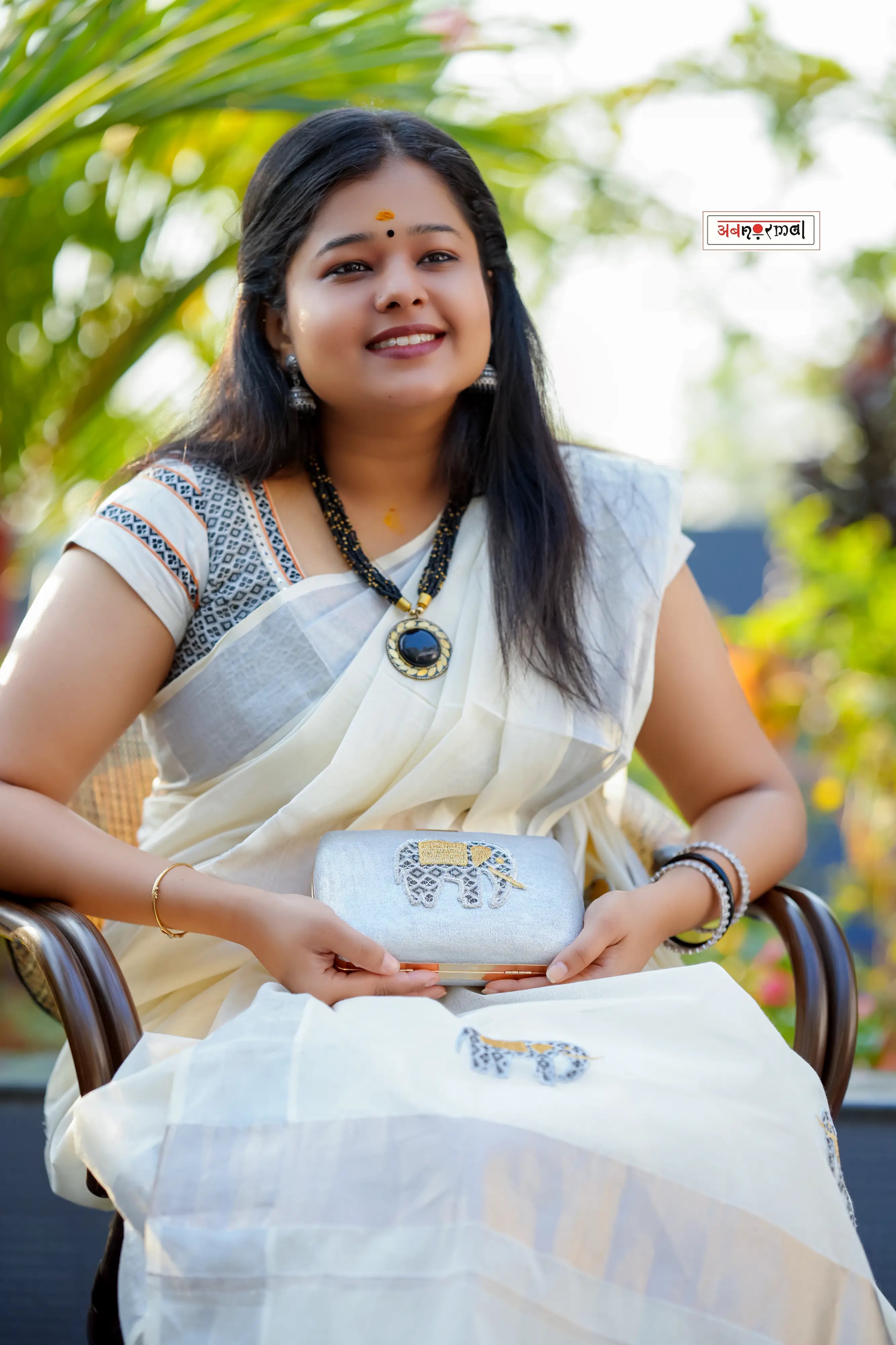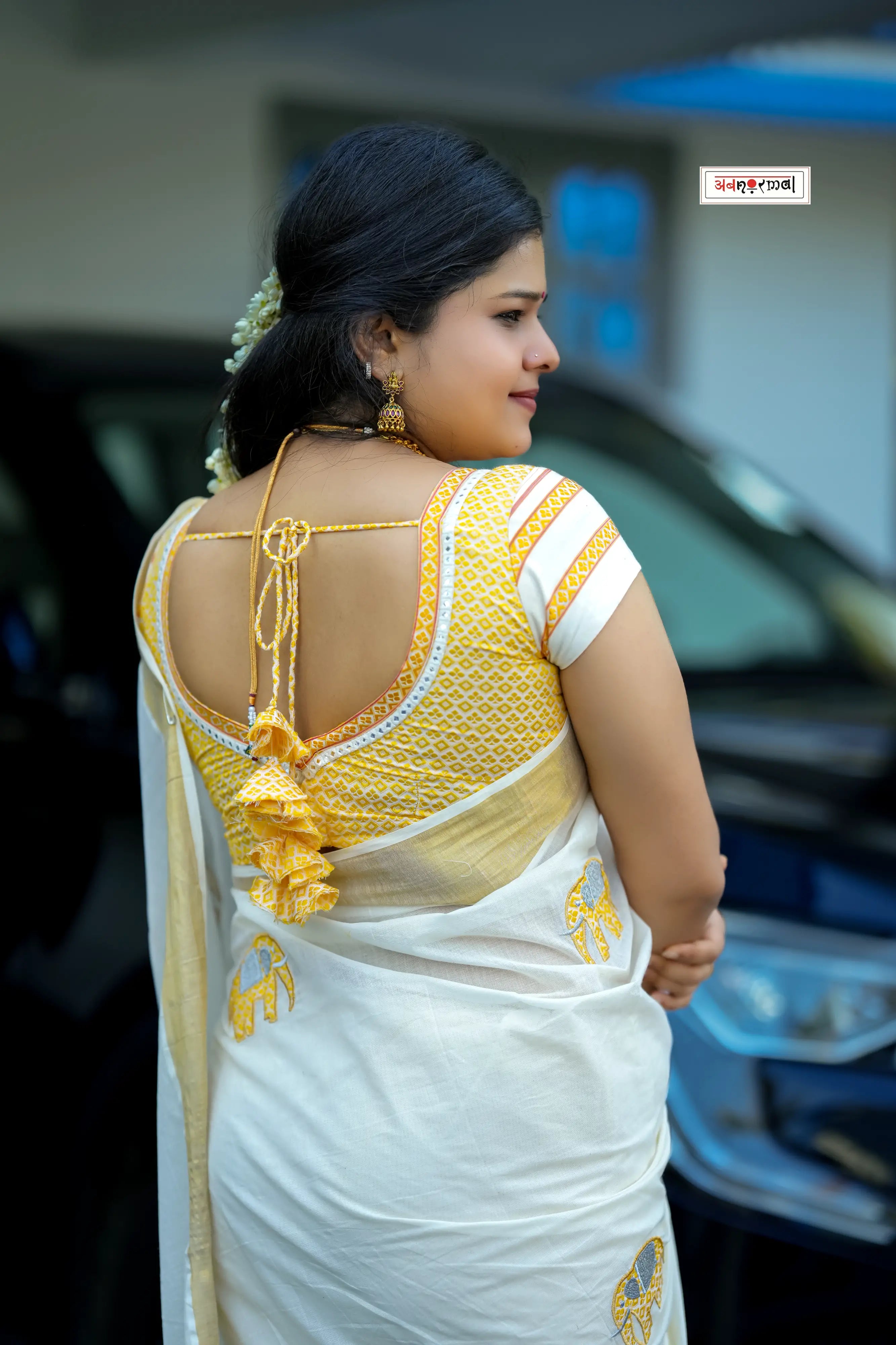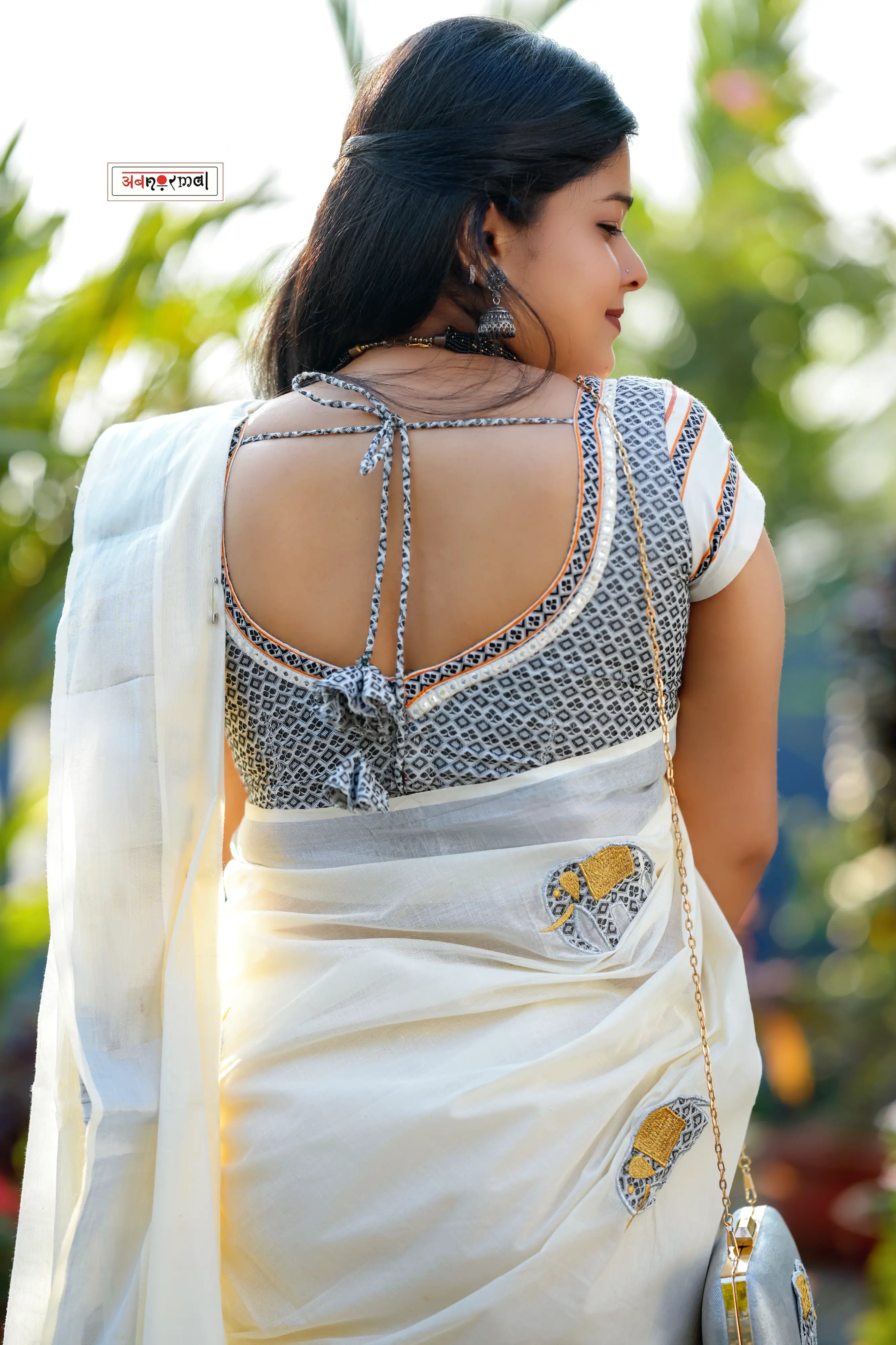 Pure Handloom Kasavu & Khun come together in this new collection for Vishu aptly named Anahita; pure, unblemished Kasavu with the graceful, gentle giants baby elephants or “Aana” in Khun appliquéd make for a style statement this summer.