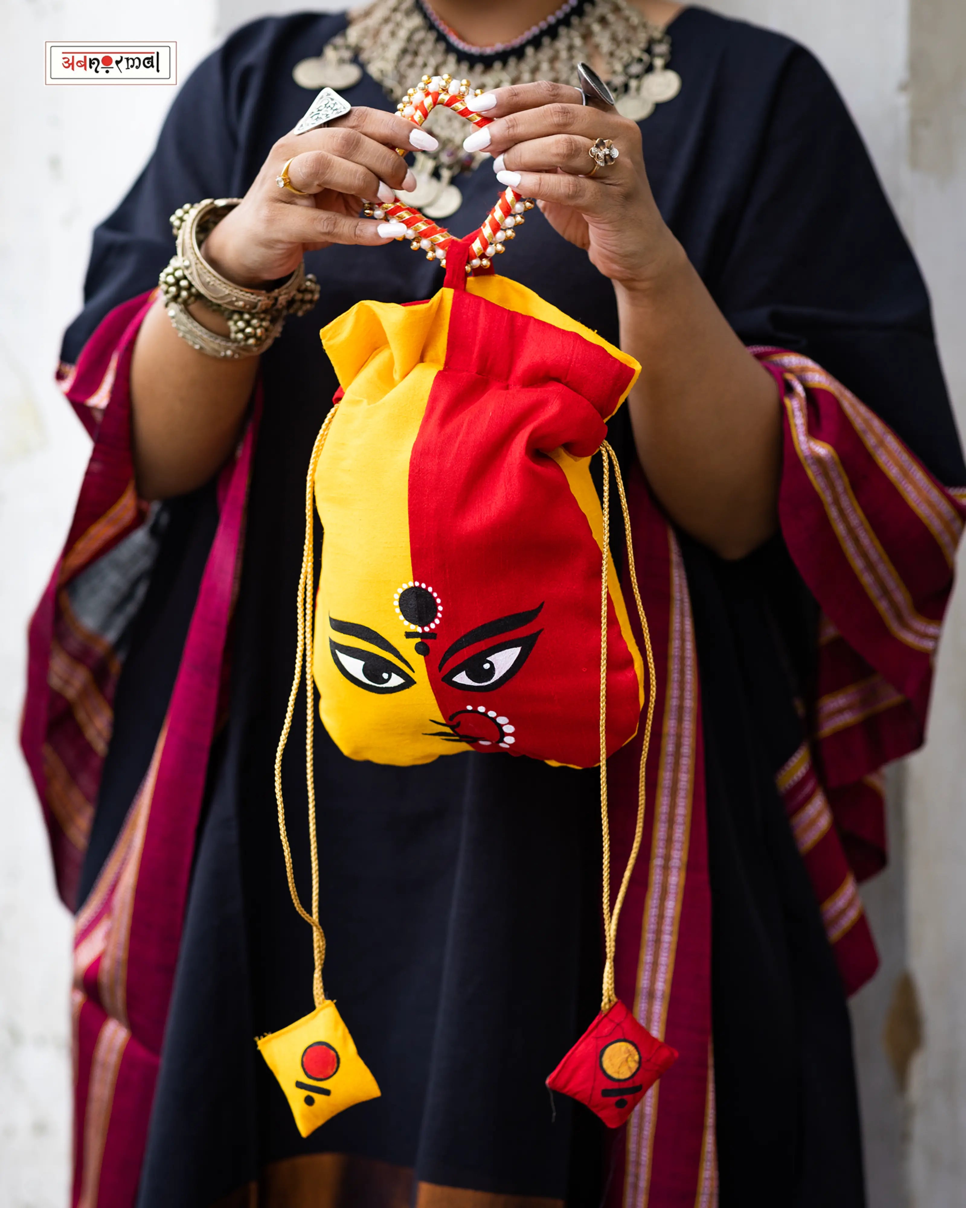 Potlis in a zara hatke & completely HANDPAINTED style that is oh so अबnoरmal! One half Haldi or Turmeric Yellow & the other half Kumkuma or Vermilion Red; the auspicious colors you would associate with Maa🙏 Reminiscent of the Haldi-Kumkum tradition that is so typical across India during any festive occasion & definitely done on every Aadi velli or Fridays