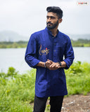 This Short Kurta can be made available in 4 shades - Golden Beige, Ivory, Black & Navy Blue.